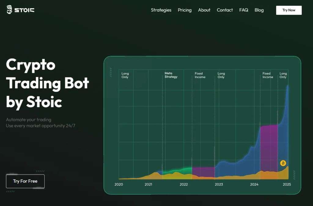 Stoic AI focuses on prebuilt trading strategies instead of requiring users to configure every trading rule manually.